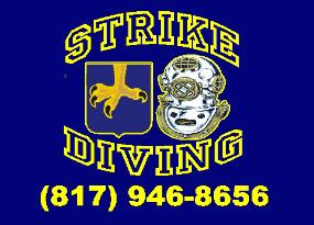WELCOME TO STRIKE COMMERCIAL DIVING. WE WILL NOT WASTE YOUR TIME WITH WAITING TO LOAD A HOME PAGE WITH NEAT LITTLE GRAPHICS. OUR WEBSITE IS LIKE OUR COMPANY STRAIT TO THE POINT. ALL OF OUR DIVERS HAVE MORE THAN FIVE YEARS OF EXPERIENCE AND ARE THE PROFESSIONALS YOU WANT ON YOUR PROJECT. WE ARE CERTIFIED COMMERCIAL LINE DIVERS NOT RECREATIONAL SCUBA DIVERS . QUALITY WORK AND SAFETY ALWAYS COME FIRST ON OUR JOB SITES. NO JOB IS TO LARGE OR SMALL, LET US HANDLE ALL OF YOUR UNDERWATER NEEDS. WE ARE A REGISTERED SERVICE DISABLED VETERAN OWNED SMALL BUSINESS *WET WELL CLEANING/INSECTION *BRIDGE AND TRESTLE INSPECTIONS *INTAKE INSPECTIONS AND MAINTENANCE *QUALITY CONTROL DIVES/INSPECTION *MARINE CONSTRUCTION *SEDIMENT/MUSSEL REMEDIATION *POTABLE WATER INSPECTIONS *PIPELINE INSPECTIONS *HAZ WHOPPER CERTIFIED *NDT LEVEL II MAG PARTICLE AND ULTRA SOUND *HELICAL TIEBACK INSTALLATION *DOCK/MARINA REPAIR MAINTENANCE REMEMBER NO JOB IS TOO LARGE OR TOO SMALL YOU NAME IT WE CAN DO IT! VETERANS AND SERVICE DISABLED VETERAN OWNED BUSINESS DISCOUNTS GIVE US A CALL (817) 946-8656 WE ARE LOCATED IN ARLINGTON TEXAS , NEAR DALLAS FORT WORTH AND OFFER NATIONWIDE SERVICE ELEMENTS OF D 1/502 INF CAMP EAGLE II S.A. JAN 1991 WE ARE A MILITARY VETERAN OWNED AND OPERATED COMPANY AND WE ALL TAKE GREAT PRIDE IN THAT. OUR COMPANY BEARS THE NAME OF THE STRIKE BRIGADE 502ND INFANTRY REGIMENT AND THREE COMPANY MEMBERS SERVED IN 1/502 INFANTRY 101ST AIRBORNE DIVISION. OUR COMPANY IS DEDICATED TO THE BRAVE SOLDIERS THAT HAVE SERVED FROM WW2 TO THE PRESENT IN IRAQI FREEDOM, WE WILL NEVER FORGET contact us Business Manager Kelly Smith ksmith@strikesalvage.com Diving Supervisor Darrin Marley dmarley@strikediving.com Quality Control C Mueller cmueller@strikesalvage.com |